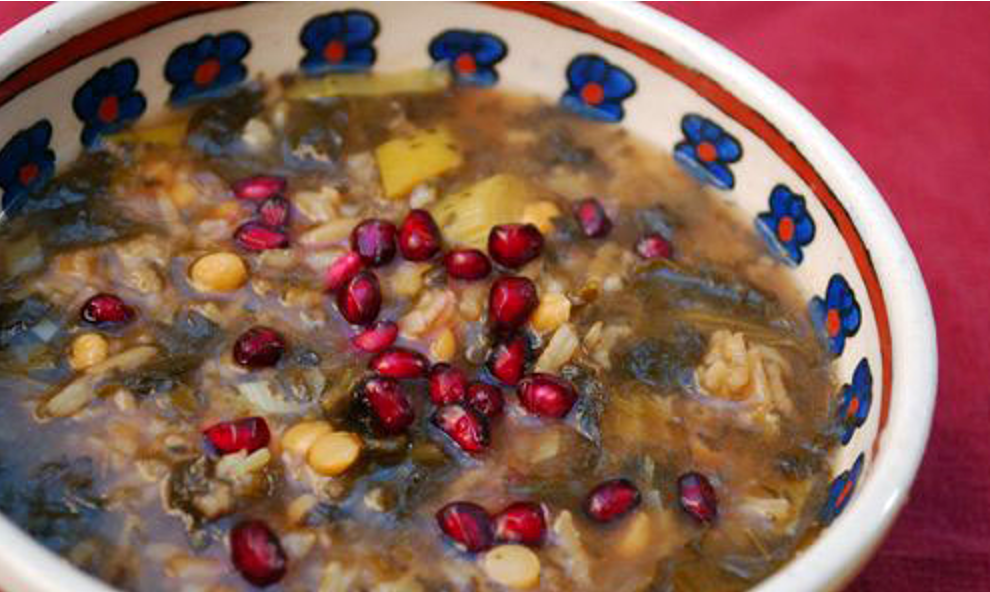 ابتدا عدس را بشویید. برای این کار عدس را داخل یک صافی بریزید و زیر آب سرد بگیرید. آن را خوب بشویید تا کاملاً پاک شود. قابلمه ای را روی شعله قرار دهید و دو قاشق کره را داخل آن بریزید تا آب شود. پیاز را خرد کنید و داخل کره آب شده بریزید. تفت بدهید تا نرم شود. گوشت چرخکرده را با کمی نمک، فلفل و کمی از زردچوبه طعمدار کنید و به شکل کوفته در بیاورید. عدس را آبکش کنید و همراه با 8 پیمانه آب، برنج، زردچوبه، کوفته ها، نمک و فلفل به قابلمه اضافه کنید. بگذارید جوش بیاید. شعله زیر قابلمه را کم کنید و درب آن را بگذارید. حدود 40 دقیقه بگذارید روی شعله ملایم بماند تا برنج و عدس نرم شوند. در این مدت انار را دان کنید و آب انار را بگیرید. وقتی برنج و عدس نرم شد، آب انار، جعفری و پیازچه خرد شده را به سوپ اضافه کنید و بگذراید 15 دقیقه دیگر قل بخورد. در تابه کوچکی 1 قاشق کشمش را ذوب کنید. کشمش را چند دقیقه در کره تفت بدهید تا طلایی رنگ شود. سوپ را داخل ظرف مورد نظر بریزید و کشمش را روی آن بپاشید. سوپ انار آماده است.