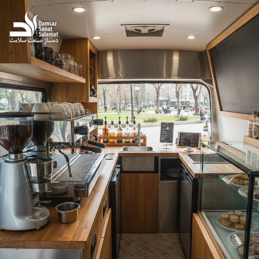 نکته حرفهای دمساز: قبل از خرید خودرو، به قدرت سیستم برق آن توجه کنید. تجهیزاتی مثل اسپرسوساز صنعتی فشار زیادی به سیستم برق وارد میکنند، بنابراین انتخاب بهترین ماشین برای کافه سیار باید بر اساس توان تحمل وزن تجهیزات سنگین آشپزخانه صنعتی باشد.